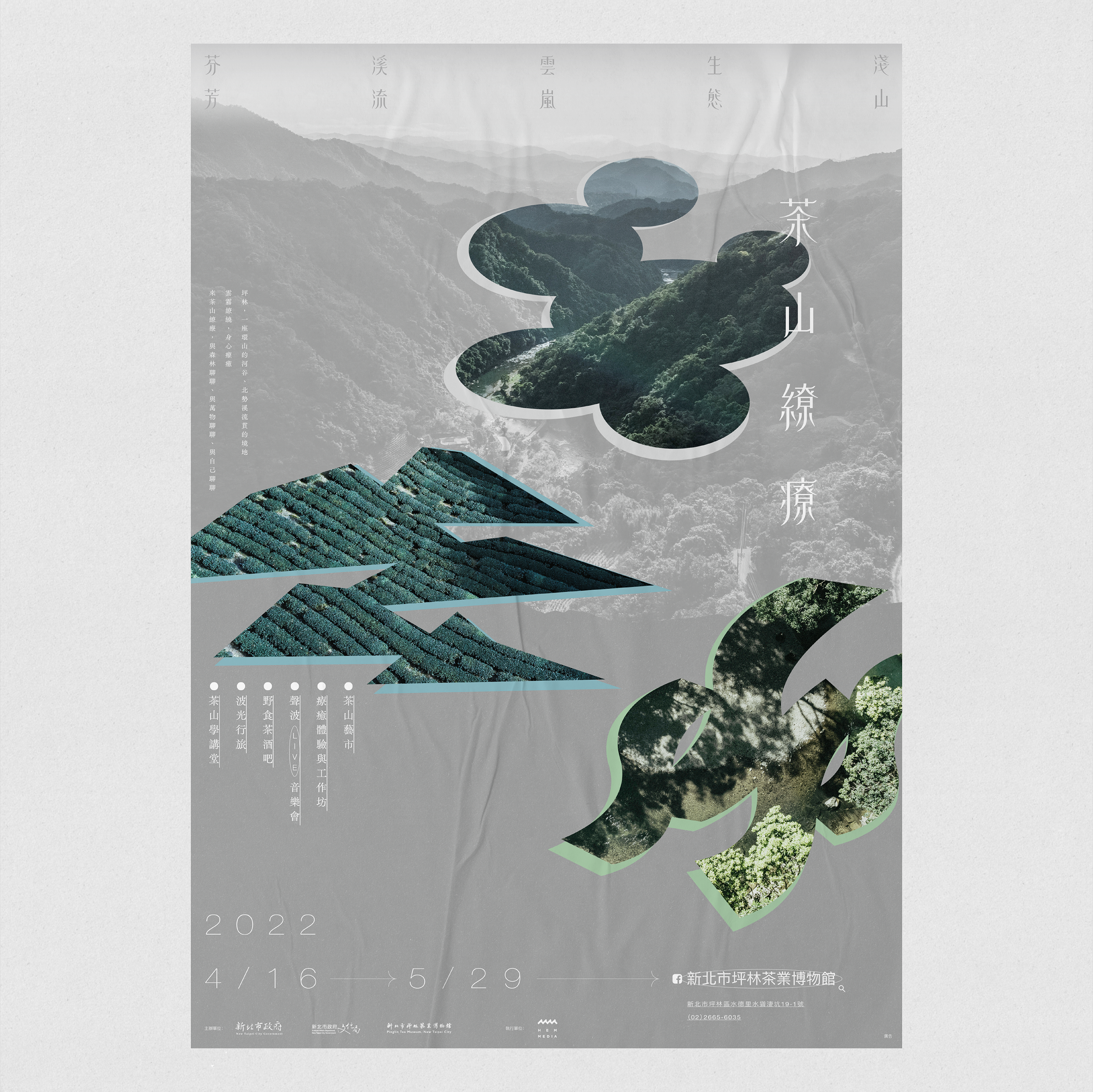 淺山即是茶山,如同孕育坪林的溫室;水域的流動,則是代表生命綿延不絕、生生不息;而迷濛的雲霧,使得我們對於坪林的想像無比深遠,是神秘的面紗、是療癒的仙境、是大地吟唱的詩歌、亦是美好的生活方式。