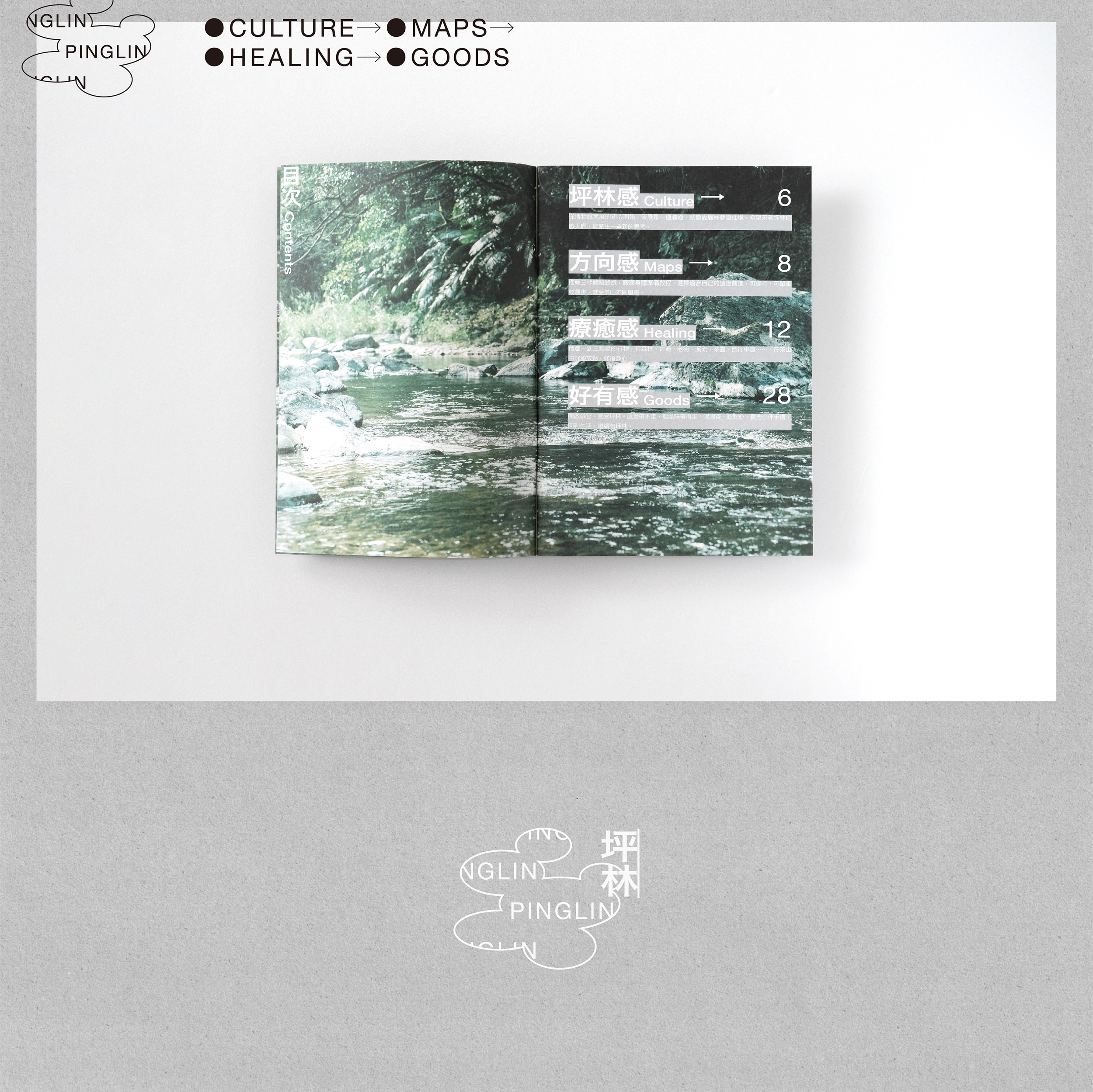 以坪林的「地域性」為基礎,延伸3個 ICON,分別象徵「淺山、雲嵐、水域」。